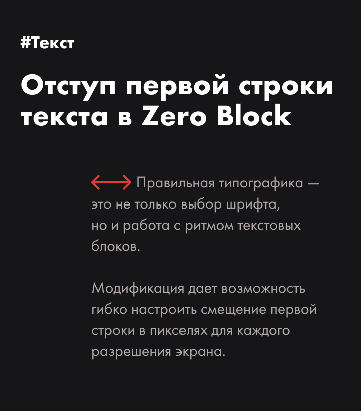 Отступ первой строки текста в Zero Block ➞